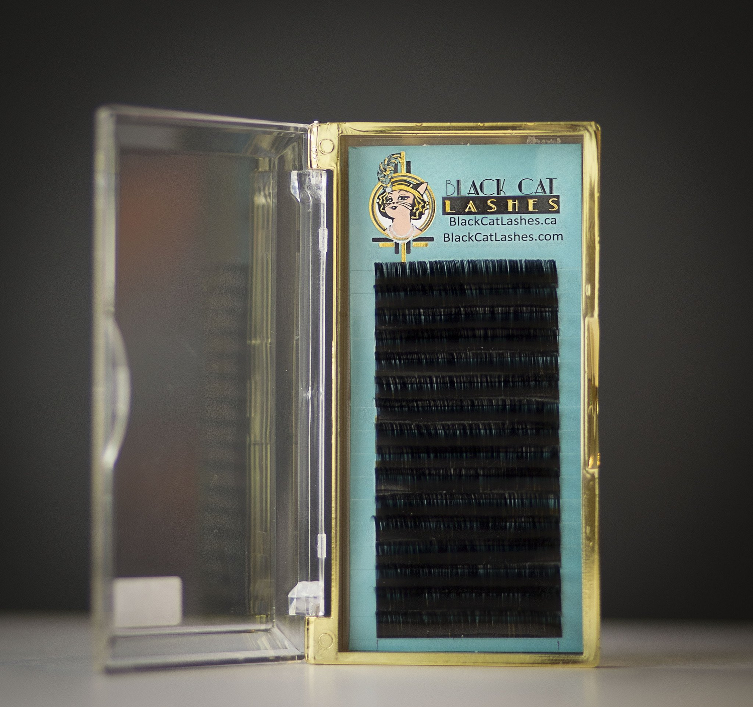 These lashes come in a Full Jet Black Color we carry our single length trays in various lengths and curls to give you the ultimate control over your clients' needs.